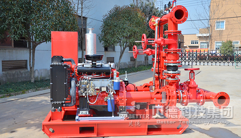 11、柴油機消防泵可與電動泵組、穩(wěn)壓泵等組成自動消防給水系統(tǒng)。